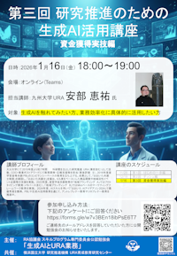 タイトル:第三回 研究推進のための生成AI活用講座 資金獲得実技編